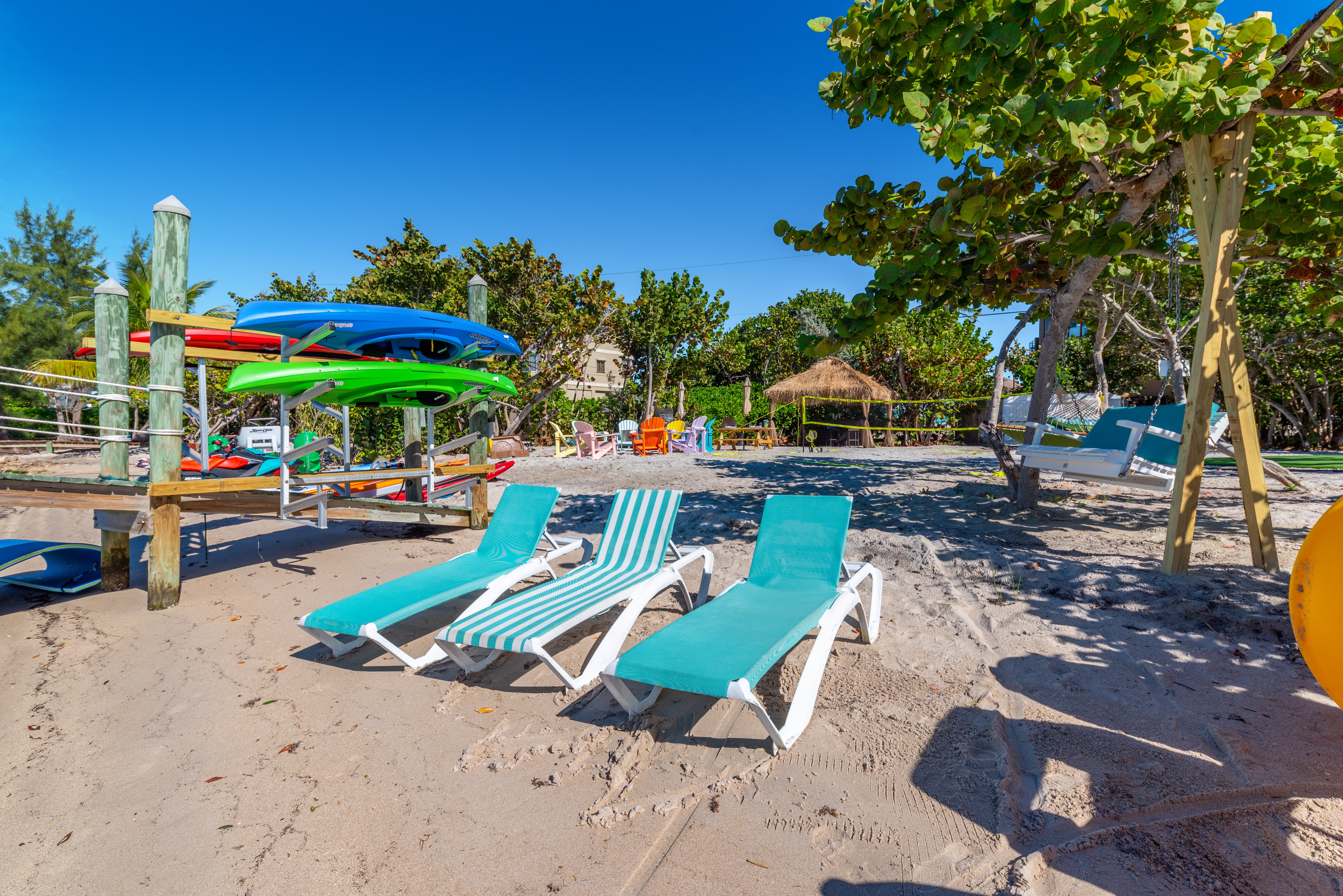In addition to the private beach, enjoy your own private dock adjacent to tiki-hut entertainment deck, complete with complimentary fishing equipment (fully-stocked tackle & gear), snorkel gear, and even complimentary water toys like paddleboards, kayaks and more. Jet skis and boats available too!