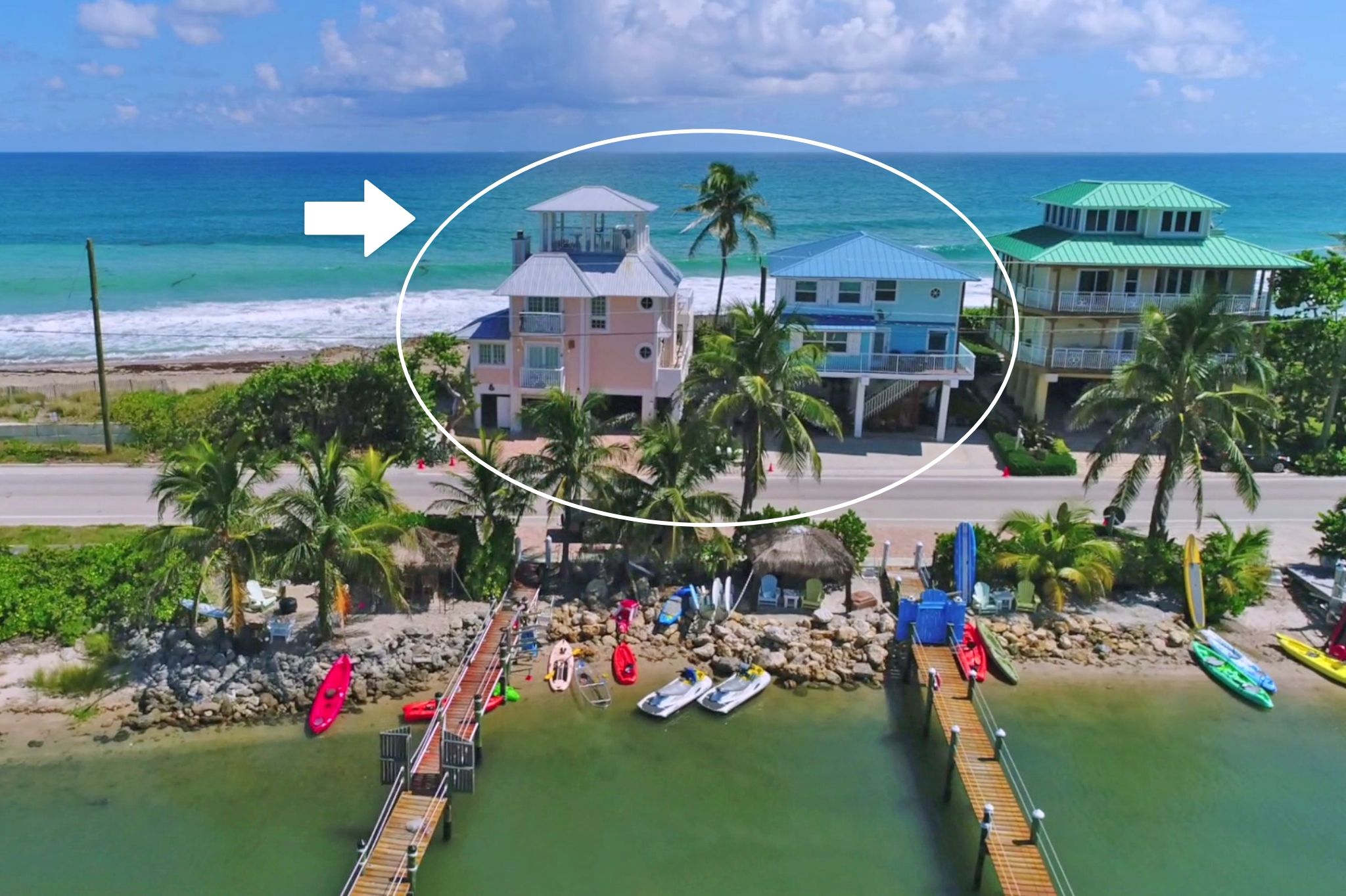 And not just two beach houses next door to each other ... two BEACHES, too: The warm Florida Atlantic Ocean on the back porch, and the pristine Indian River (complete with private dock) off the front driveway. Soak in sunrises *and* sunsets ... swim, paddleboard, snorkel or kayak on whichever side the water is best!
